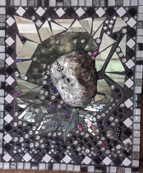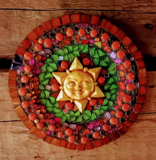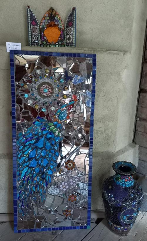 Taiteilijana Heli Meronen mosaiikkitöineen.