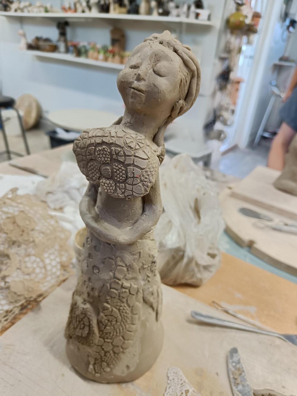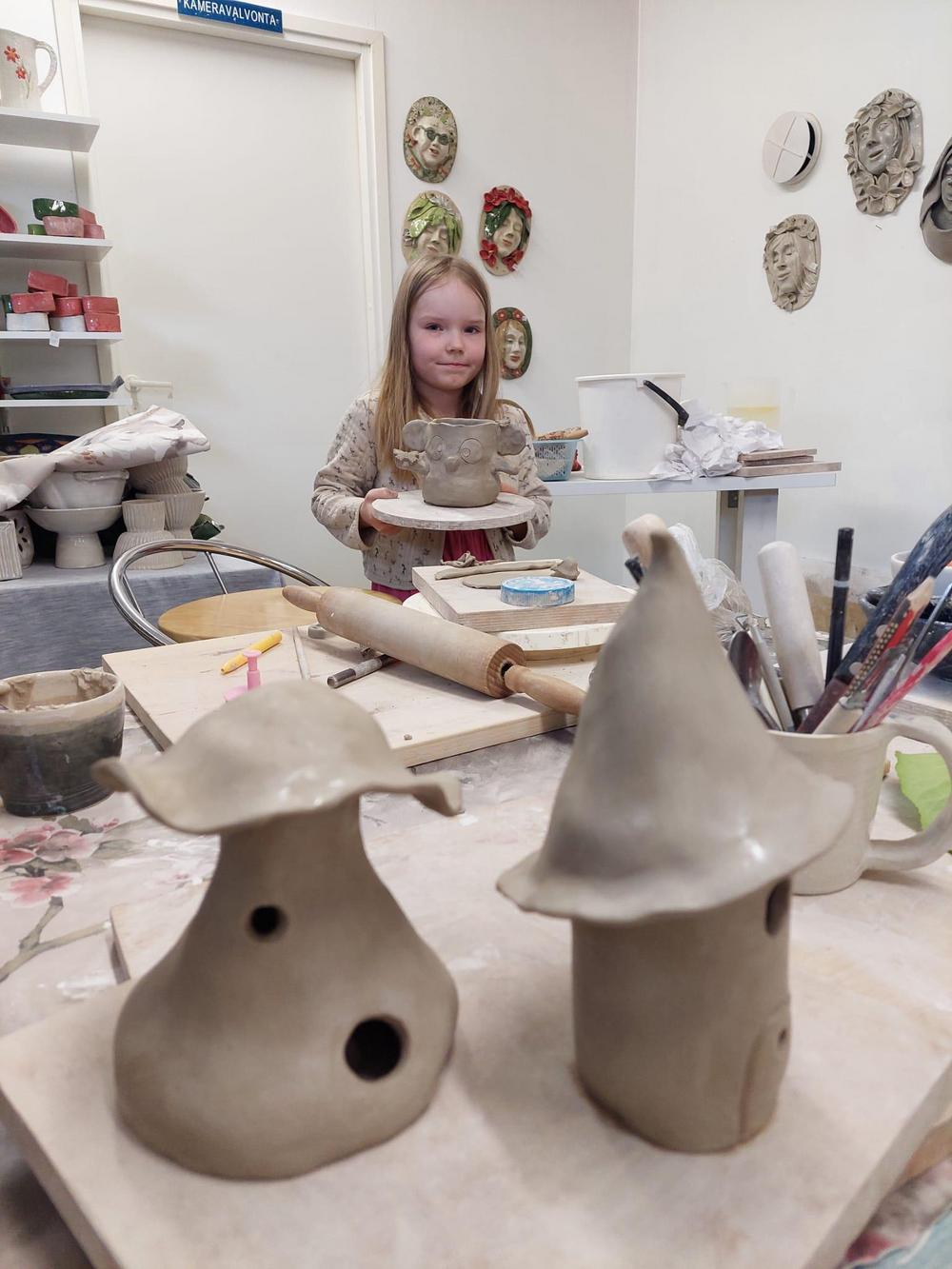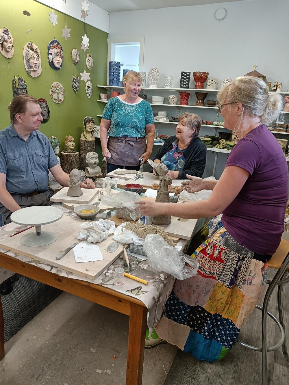 Kurssi pidettiin Koivuniemessä Anneli Lehtimaan savipajalla la 8.6.2024. Kurssille osallistui 6 innokasta muovailijaa. Ensimmäisen päivän työt Anneli polttaa, jonka jälkeen tuotteet maalataan. Tämän jälkeen savityöt menevät vielä kerran polttoon (=lasitus), jonka jälkeen vasta nähdään miltä teos lopullisesti näyttää.